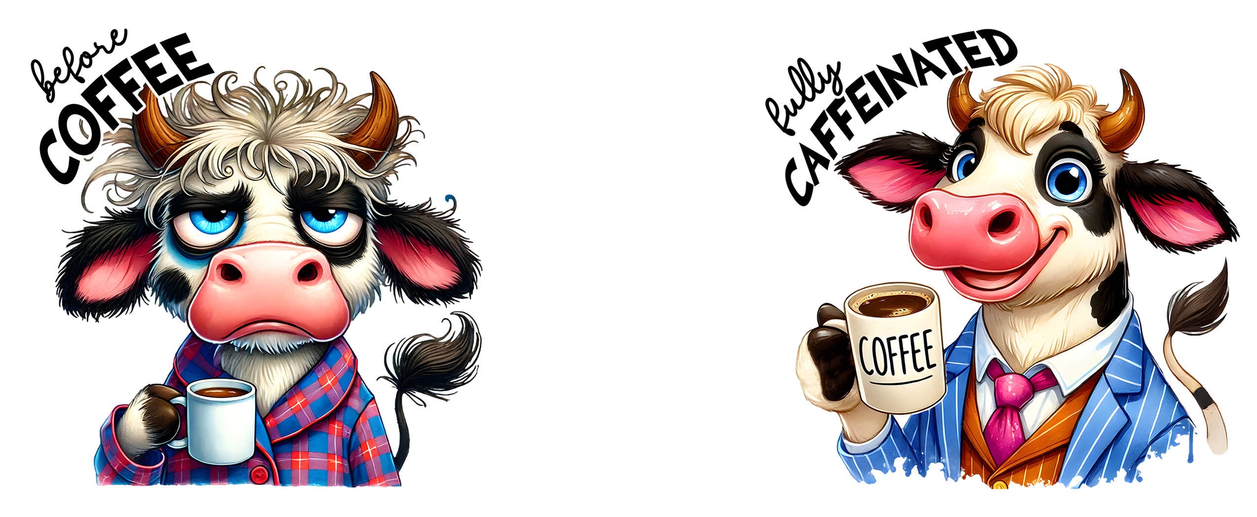 Transformă fiecare dimineață într-un moment de amuzament cu această cană personalizată „Before Coffee / Fully Caffeinated”! Cu un design vibrant, care ilustrează perfect starea de dinainte și după cafea, această cană este ideală pentru cei care nu pot începe ziua fără doza lor de energie. Personajele desenate cu ochi mari și expresii hilare adaugă un plus de personalitate fiecărei înghițituri. Este un cadou perfect pentru colegi, prieteni sau pentru tine însuți – pentru că știi cât de reală e diferența!