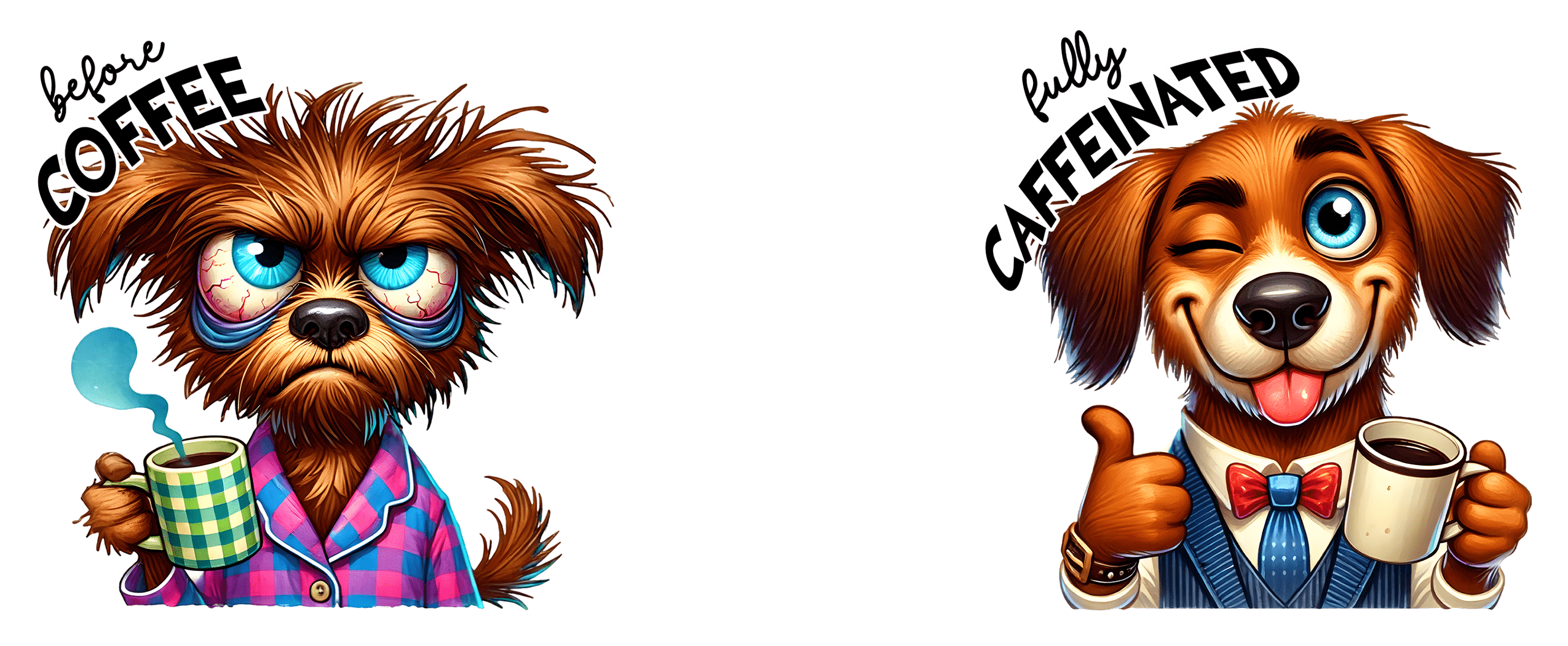 Transformă fiecare dimineață într-un moment de amuzament cu această cană personalizată „Before Coffee / Fully Caffeinated”! Cu un design vibrant, care ilustrează perfect starea de dinainte și după cafea, această cană este ideală pentru cei care nu pot începe ziua fără doza lor de energie. Personajele desenate cu ochi mari și expresii hilare adaugă un plus de personalitate fiecărei înghițituri. Este un cadou perfect pentru colegi, prieteni sau pentru tine însuți – pentru că știi cât de reală e diferența!