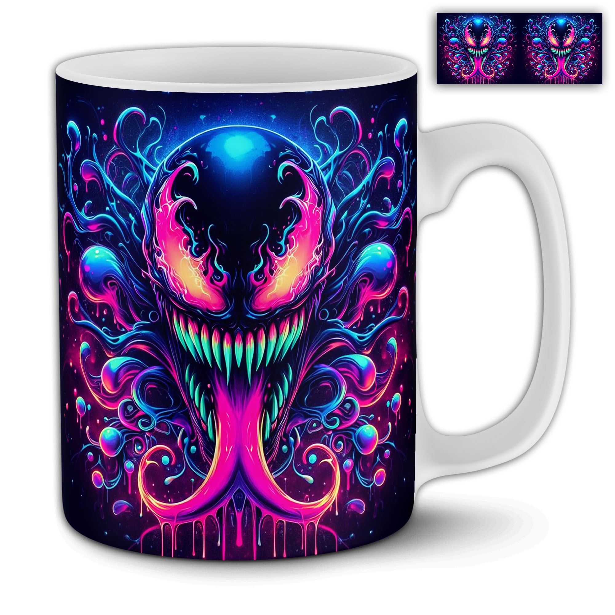 Începe-ți ziua cu o doză de adrenalină! Această cană personalizată impresionează printr-un design 3D spectaculos, ce îl înfățișează pe Venom spărgând peretele și ieșind spre tine într-un stil realist și intens. Realizată din ceramică de înaltă calitate, cana este potrivită atât pentru cafea, ceai, cât și pentru alte băuturi preferate.