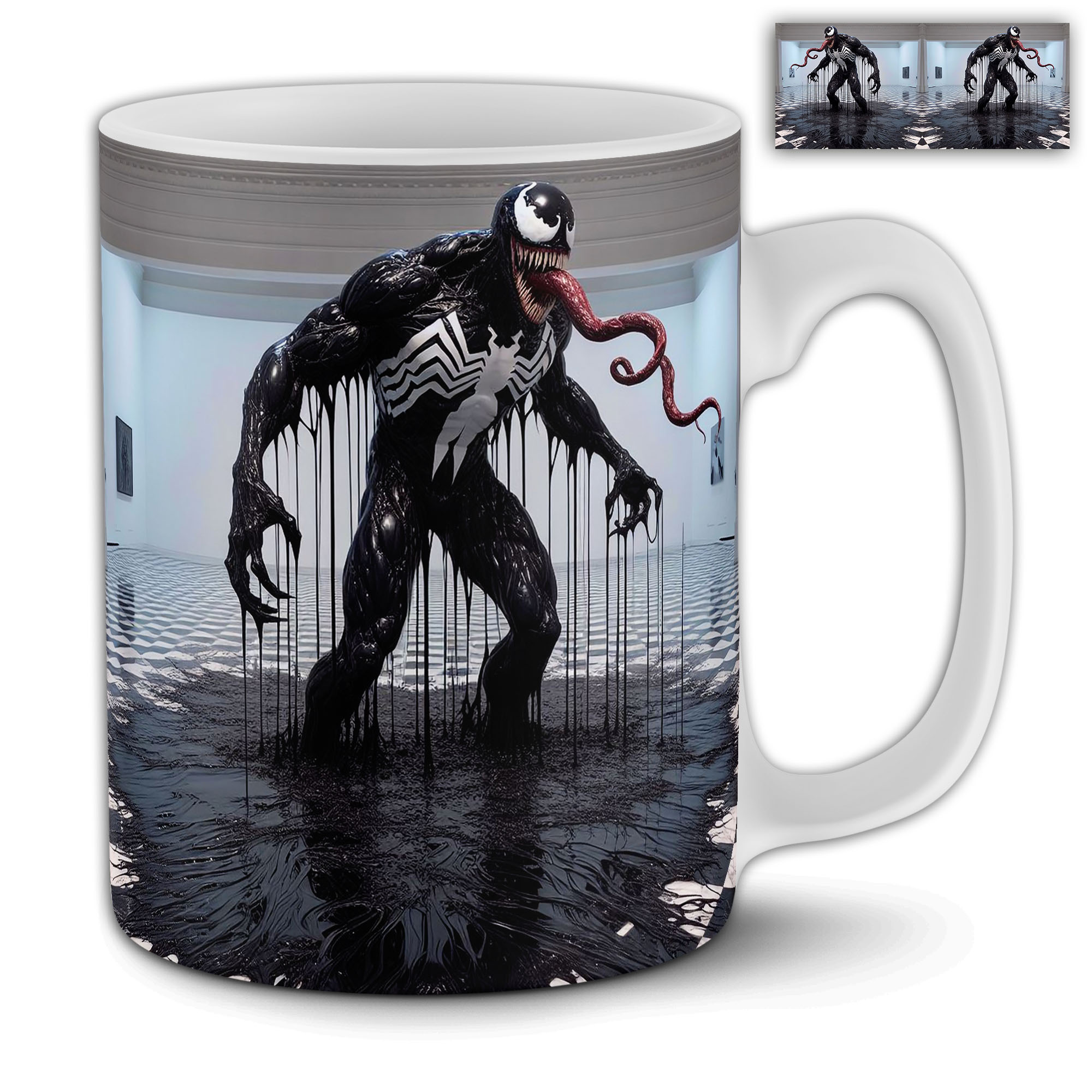 Începe-ți ziua cu o doză de adrenalină! Această cană personalizată impresionează printr-un design 3D spectaculos, ce îl înfățișează pe Venom spărgând peretele și ieșind spre tine într-un stil realist și intens. Realizată din ceramică de înaltă calitate, cana este potrivită atât pentru cafea, ceai, cât și pentru alte băuturi preferate.
