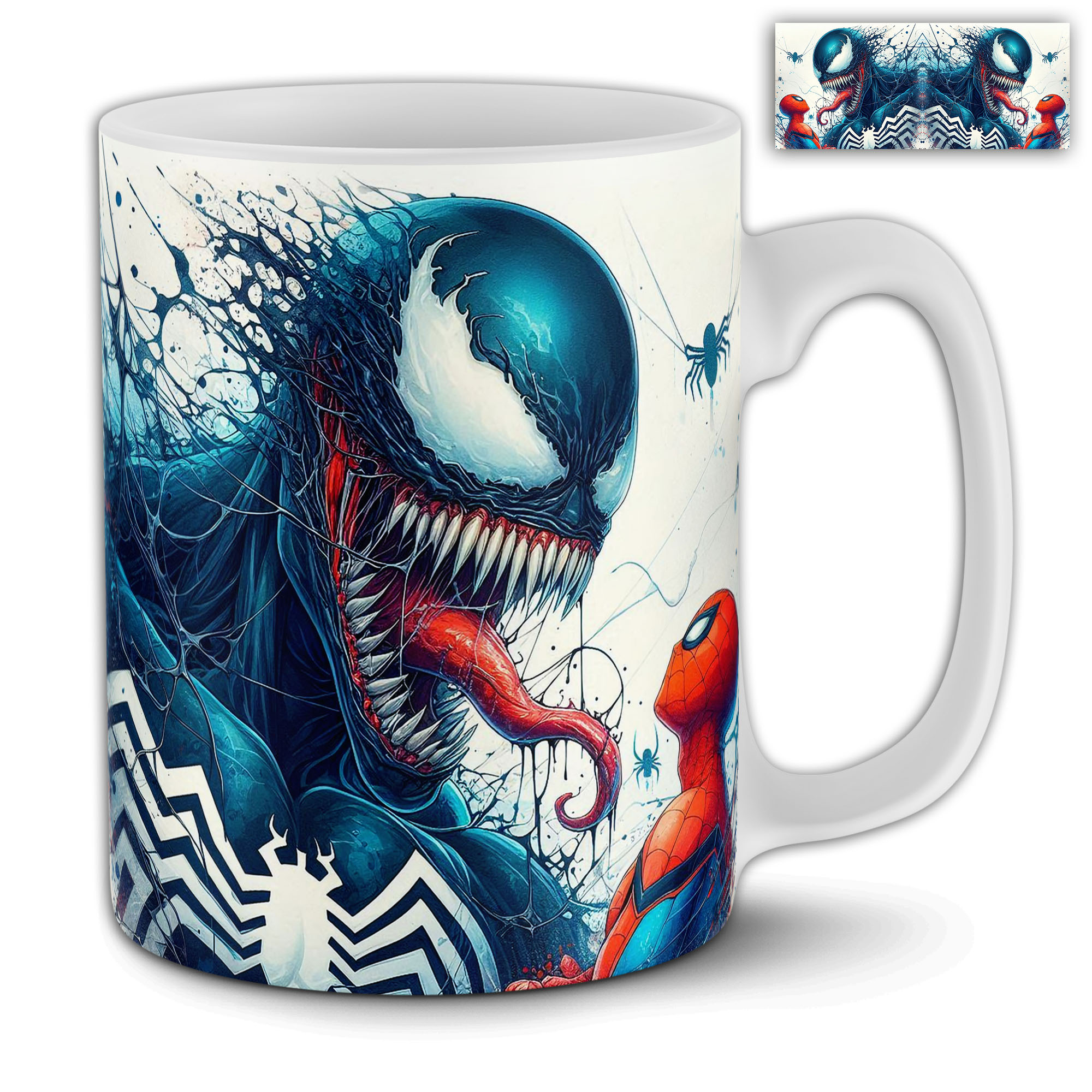Cana personalizată cu design 3D spectaculos inspirat de Venom – perfectă pentru fanii universului Marvel și nu numai! Un cadou cool și original pentru orice ocazie.
