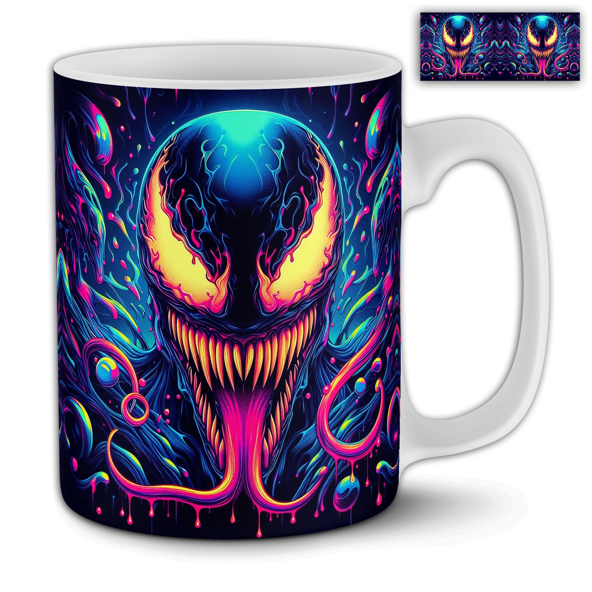 Cana personalizată cu design 3D spectaculos inspirat de Venom – perfectă pentru fanii universului Marvel și nu numai! Un cadou cool și original pentru orice ocazie.