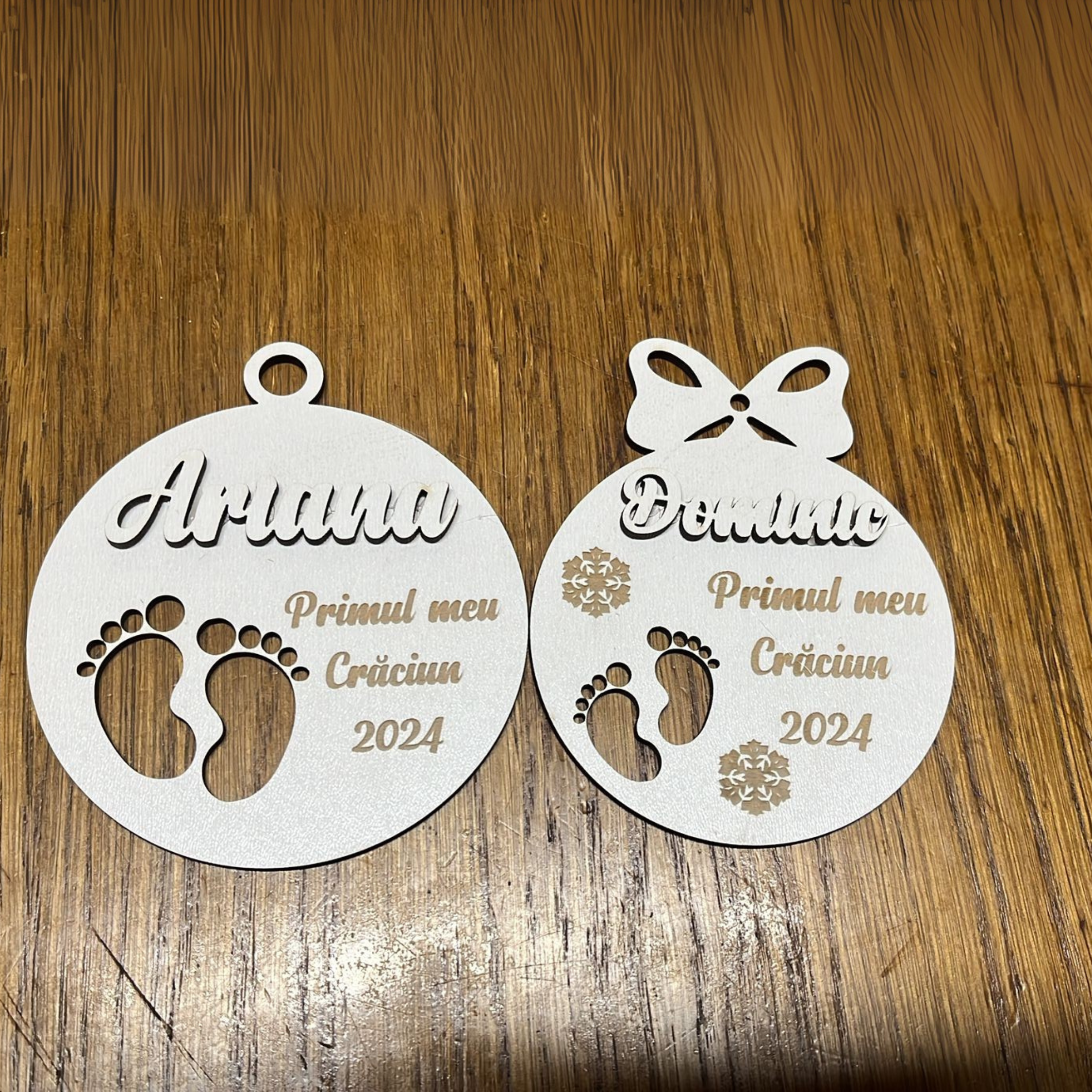 Modelele includ elemente drăgălașe precum tălpițe de bebeluș, fulgi de nea sau fundiță, ceea ce face ca fiecare ornament să fie plin de căldură și semnificație.