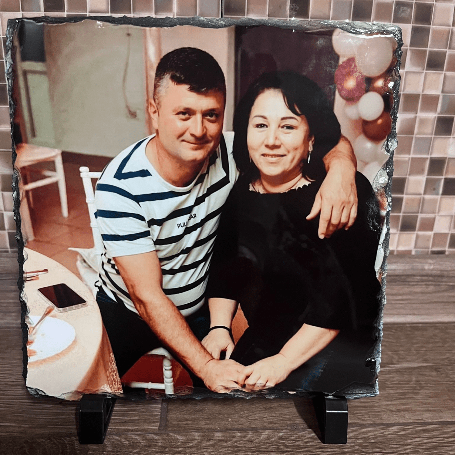 Transformă o fotografie dragă într-un obiect decorativ deosebit cu această placă de ardezie personalizată. Realizată din piatră naturală, cu margini neregulate ce îi oferă un aspect rustic și autentic, placa devine un suport unic pentru amintirile tale. Imaginea este imprimată în culori vii și rezistente, iar suportul inclus permite expunerea ușoară pe birou, raft sau noptieră.