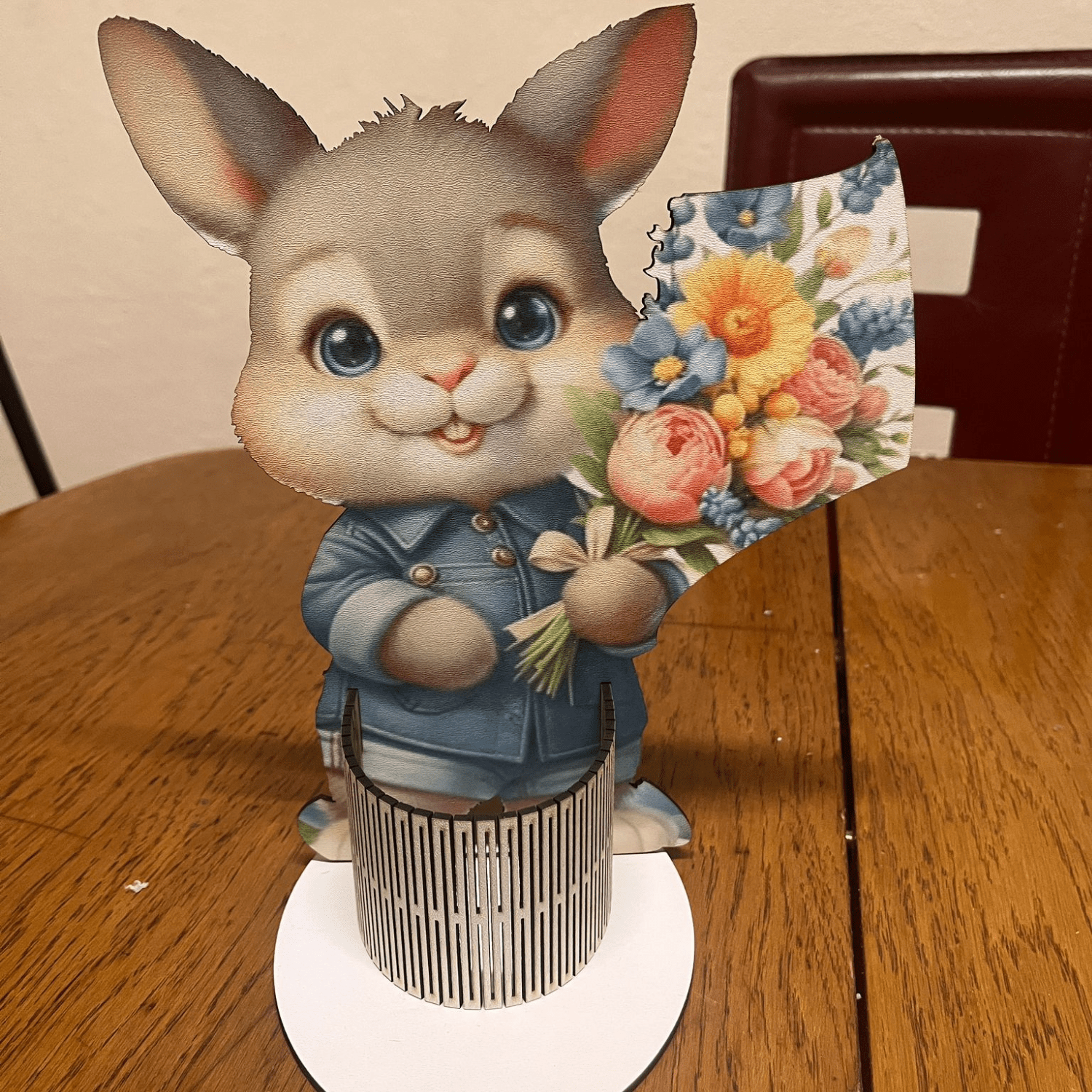 Suport decorativ din MDF pentru ou sau dulciuri – Model Iepuraș cu flori